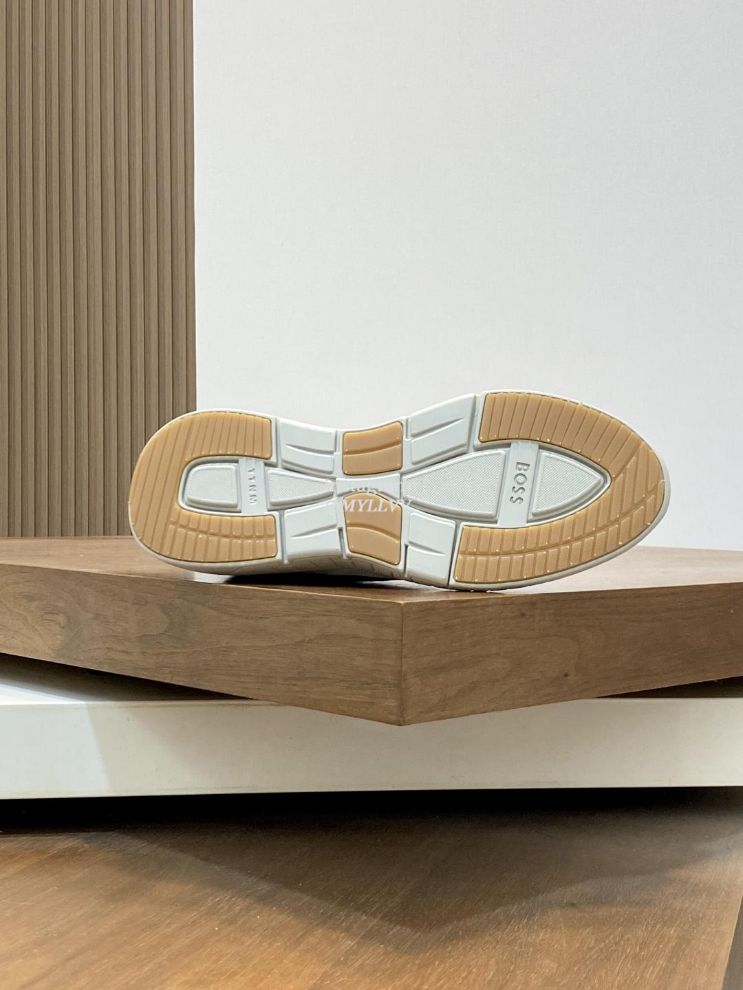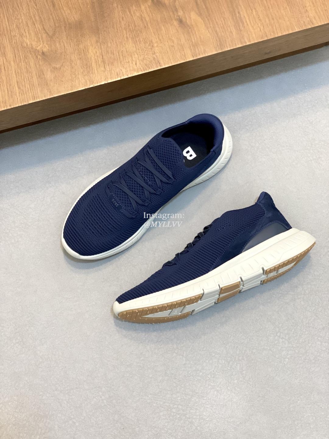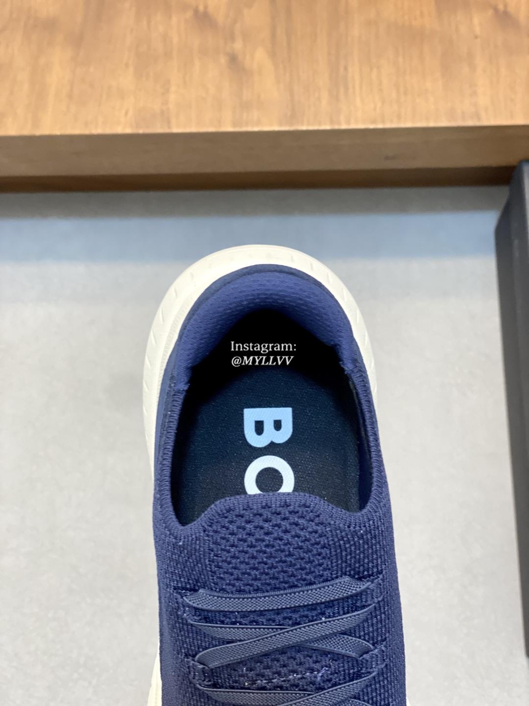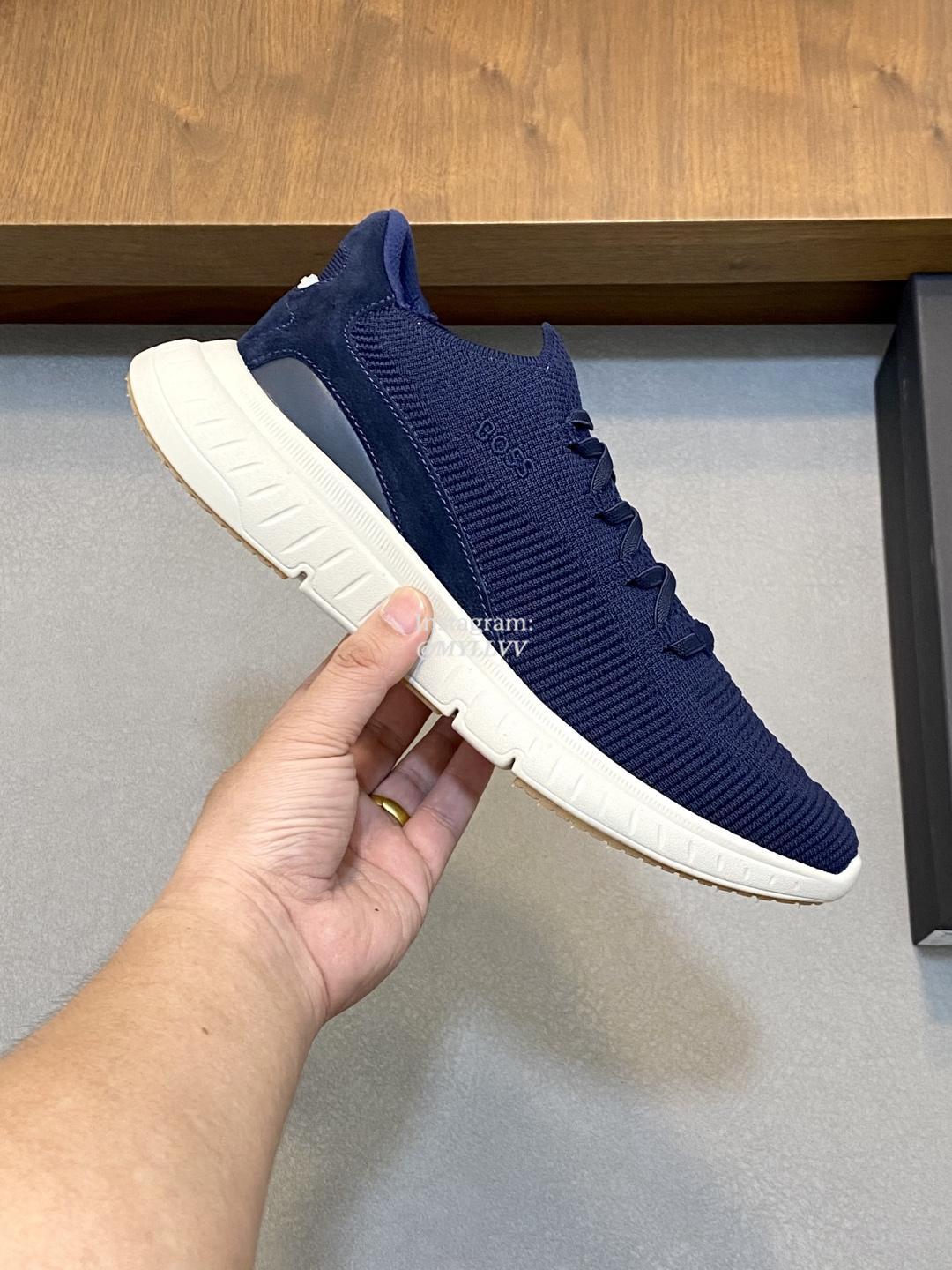 The shoe design is simple and smooth, fashionable and versatile. The upper of the shoe is made of high elasticity knitted material, which is lightweight and breathable, fits the foot well, and provides a comfortable wearing experience. Knitted BOSS logo details, composite splicing, suede leather decoration/calf leather patch embellishment, rubber label tri color logo, heel details, full mesh lining with ultra light rubber sole, excellent breathability and elasticity.