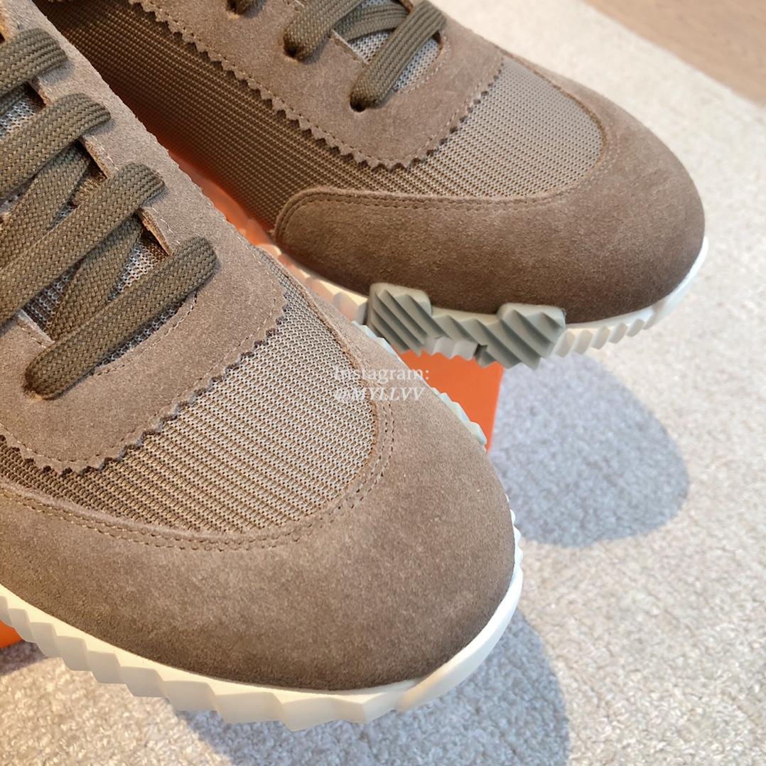 Hermes Couple’s Breathable Mesh Fabric Suede Cowhide Sport Shoes