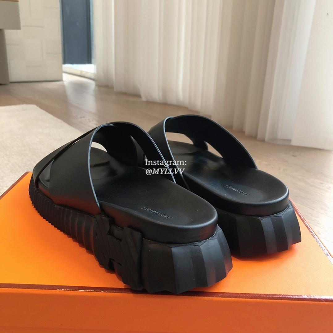 Hermes Couple’s Cowhide Leather Thick Sole Casual Slippers