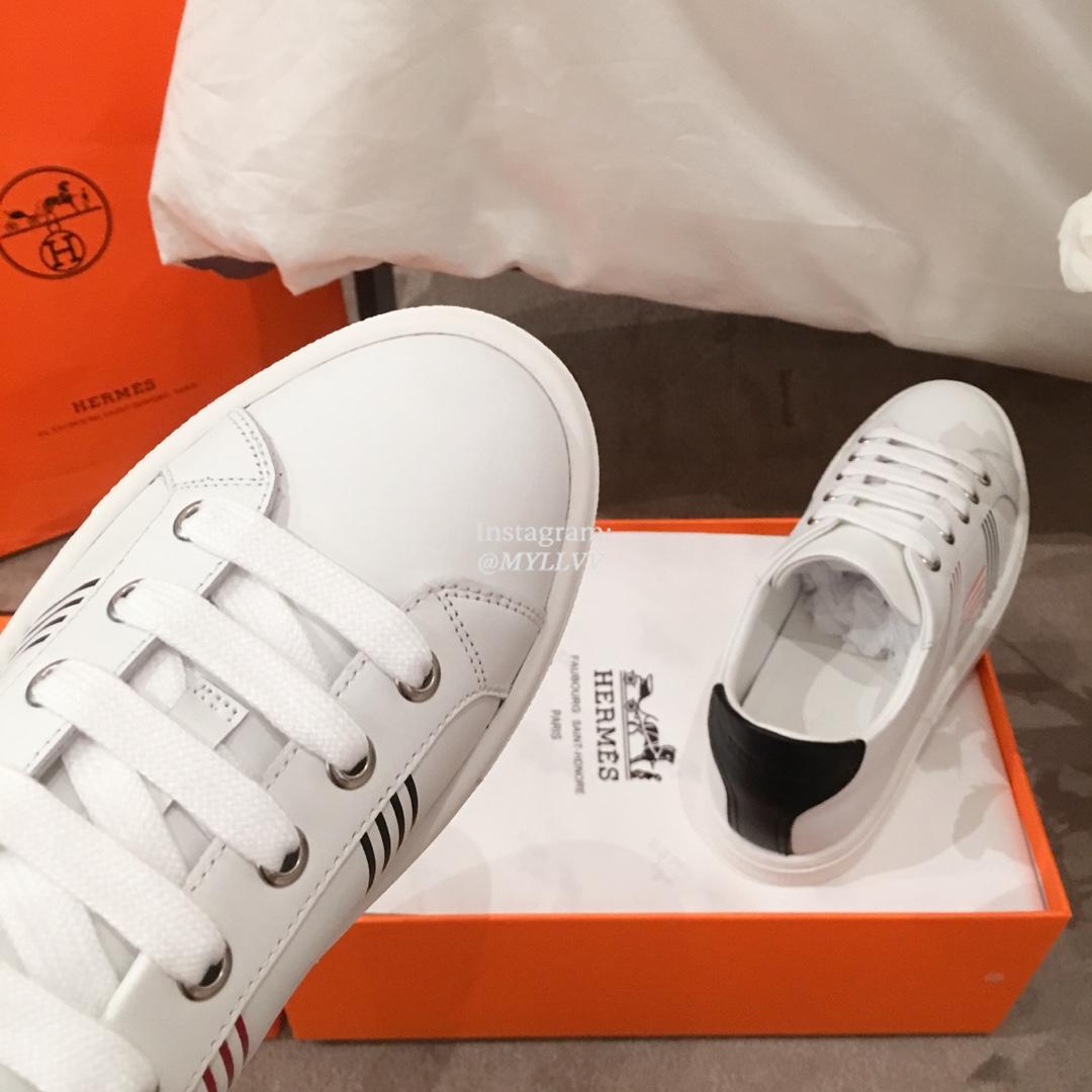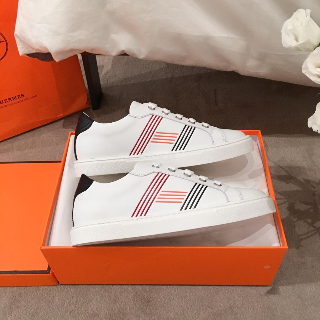 Hermes Couple’s Good Quality Cowhide Leather White Shoes