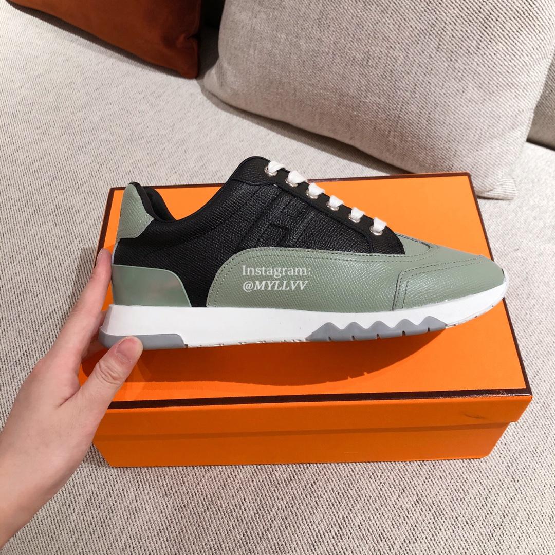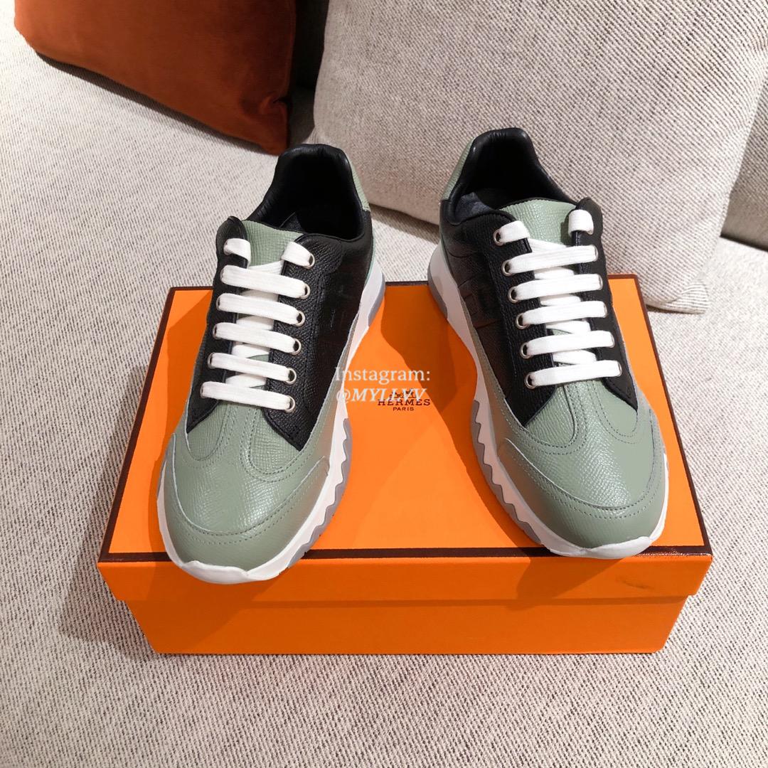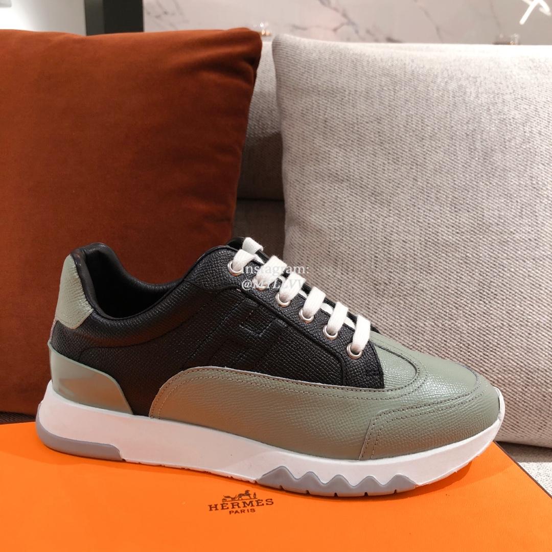 Hermes Couple’s Good Quality Lychee Grain Cowhide Leather Sport Shoes
