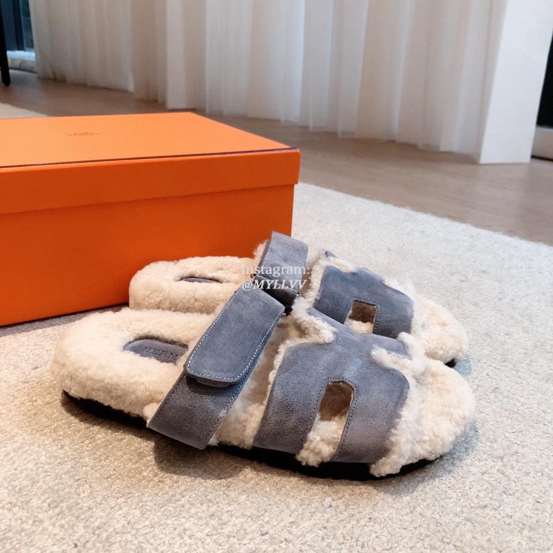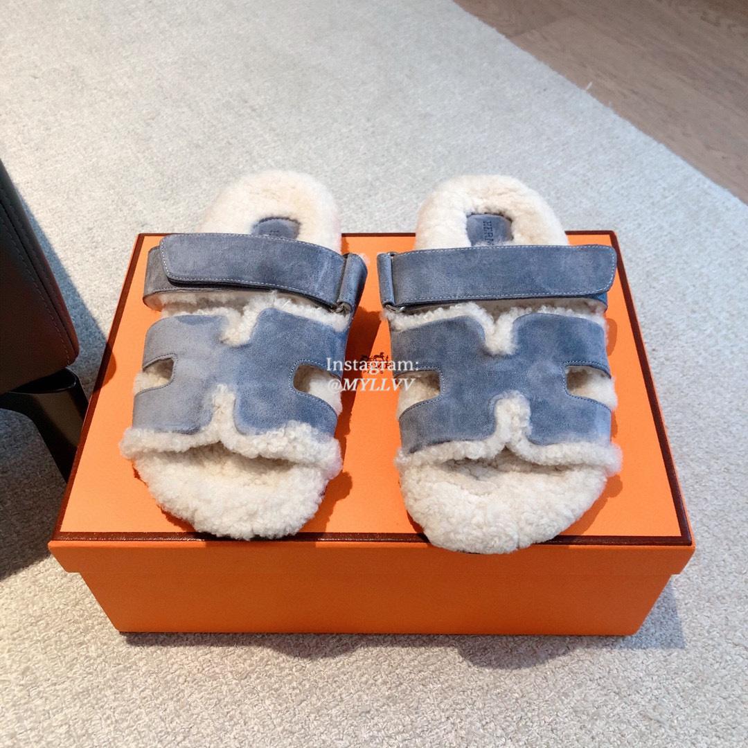 Hermes Couple’s Spring And Summer Color Matching Roll Cake Hair Casual Slippers