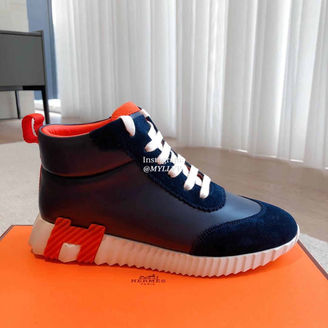 Hermes Giga Couple High Top Cowhide Leather Casual Sports Shoes