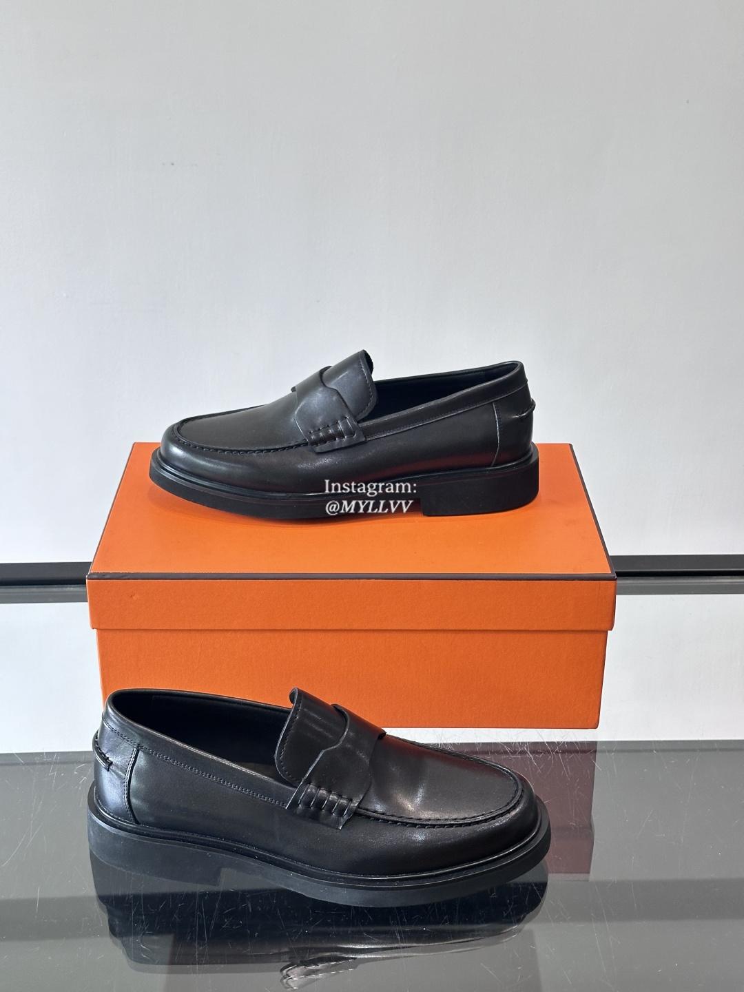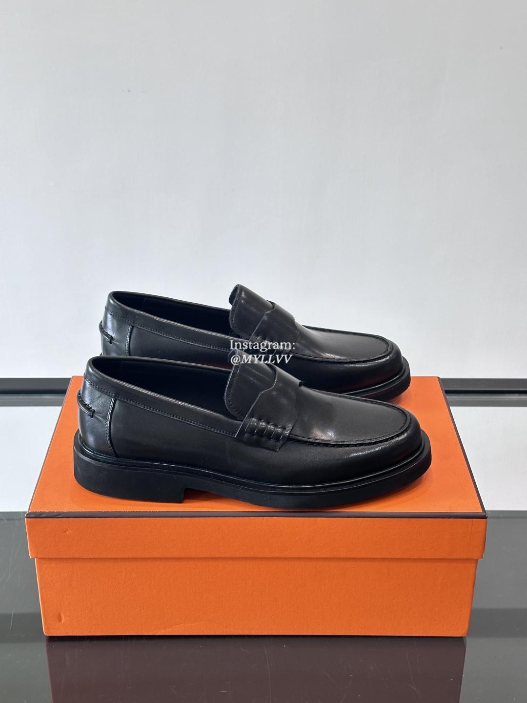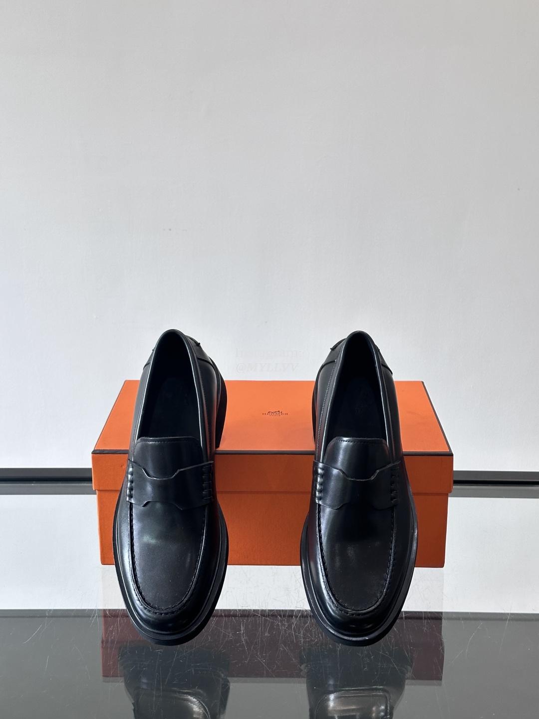 Hermes Men’s Business Casual Cowhide Leather Dress Shoes