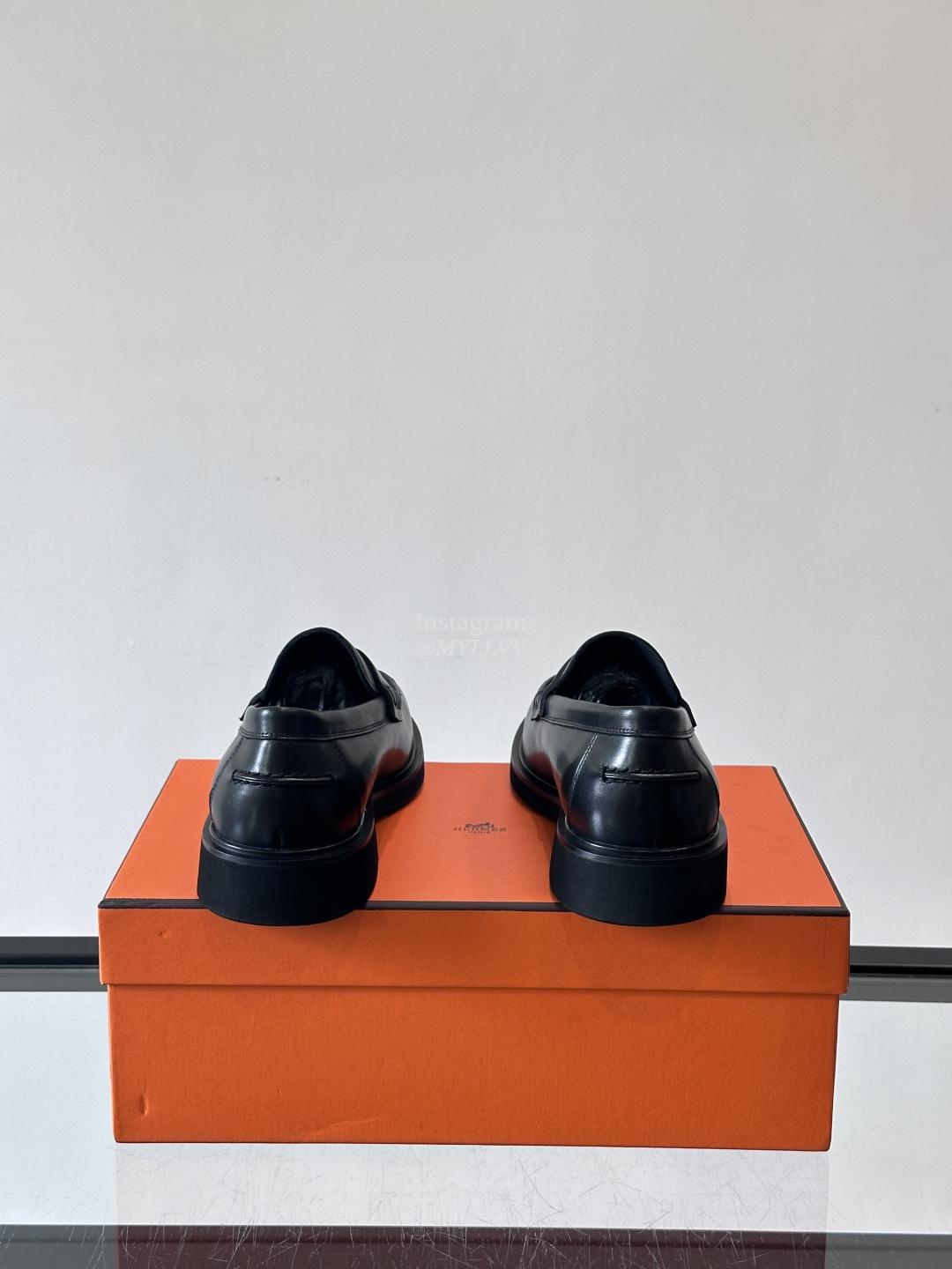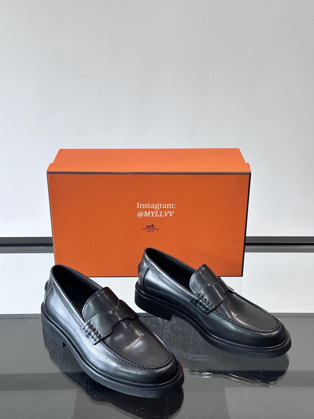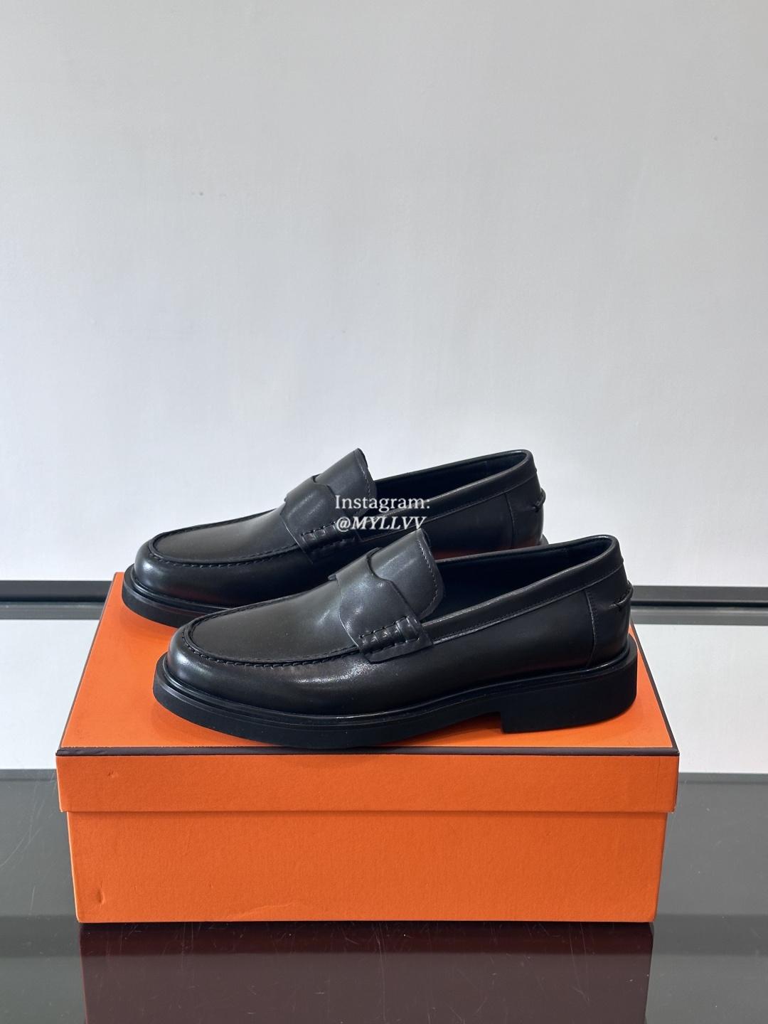 Hermes Men’s Business Casual Cowhide Leather Dress Shoes