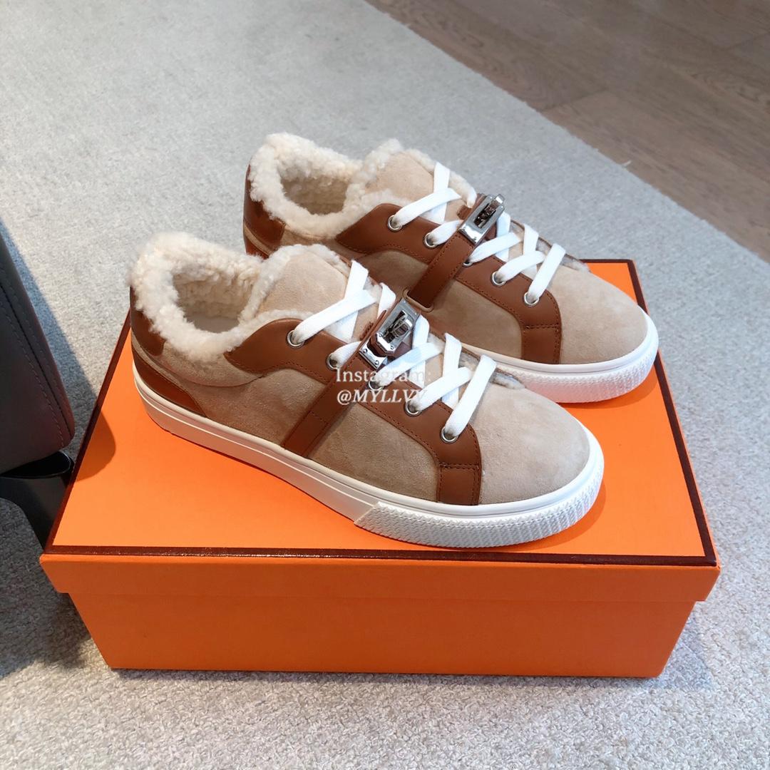 Hermes Wool And Cowhide Leather Sport Shoes For Men And Women