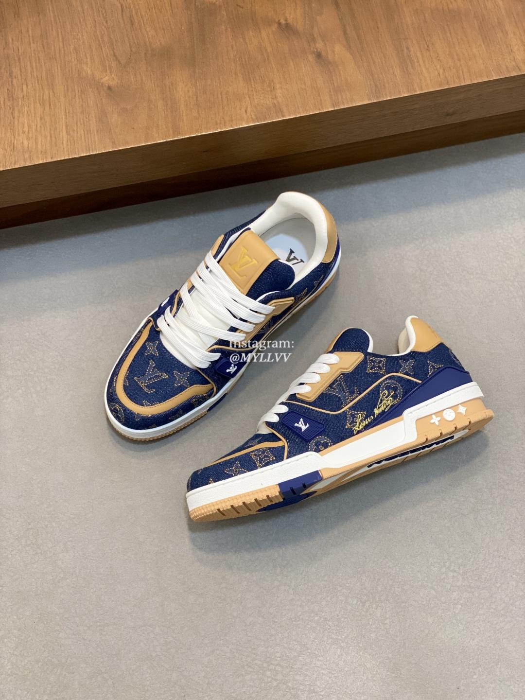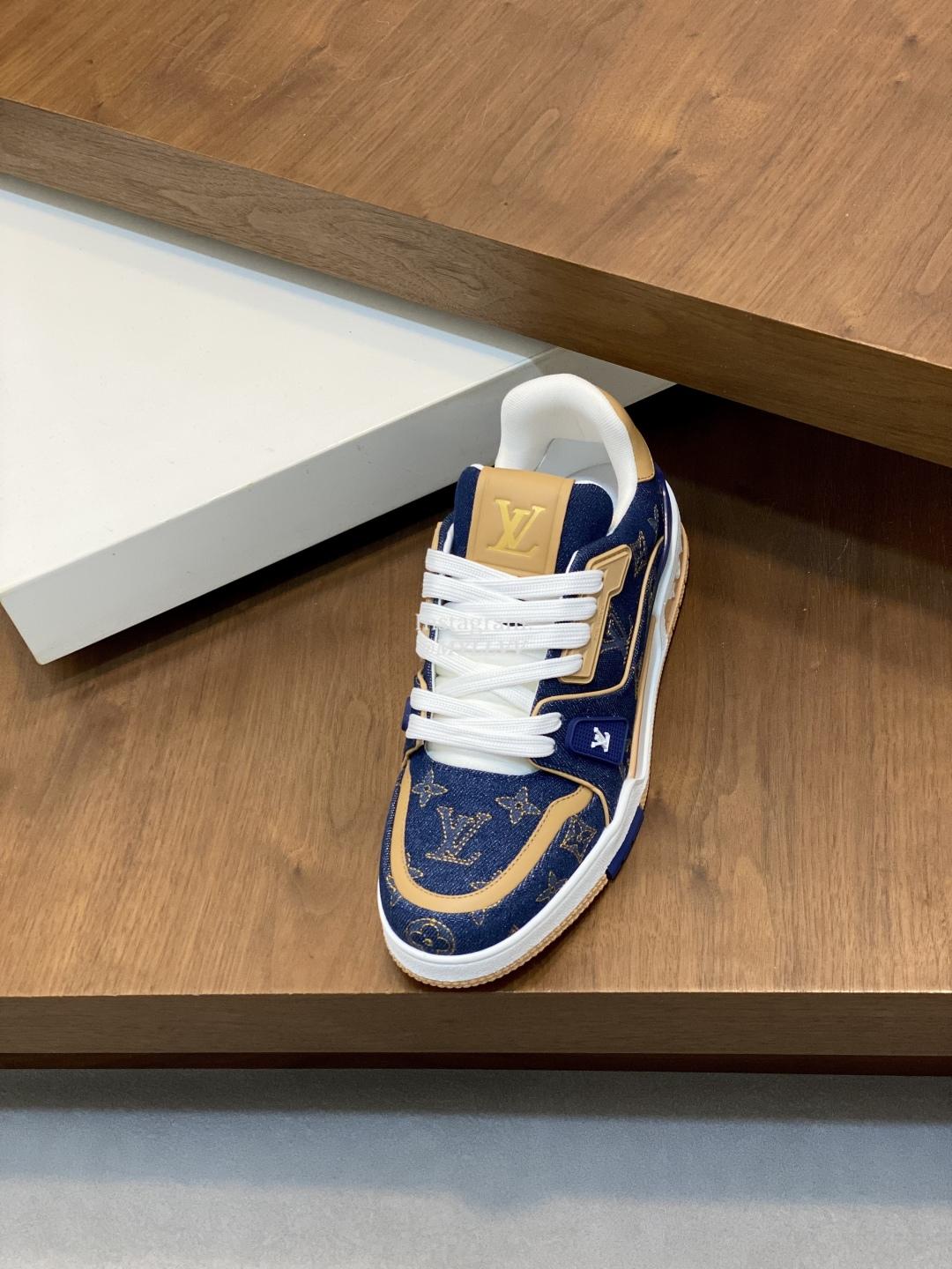 Louis Vuitton Trainer Men’s New Denim And Cowhide Leather Casual Sports Shoes