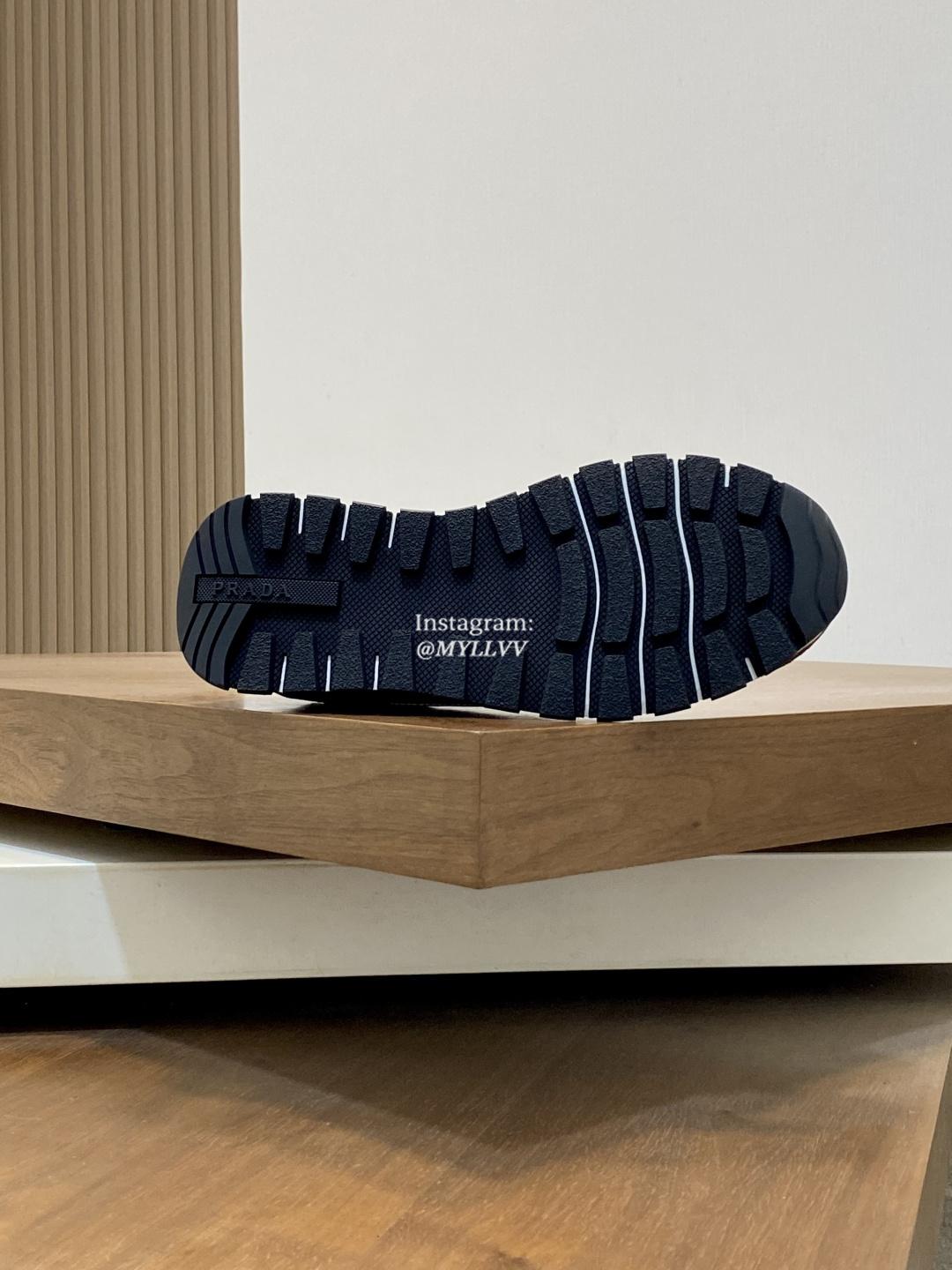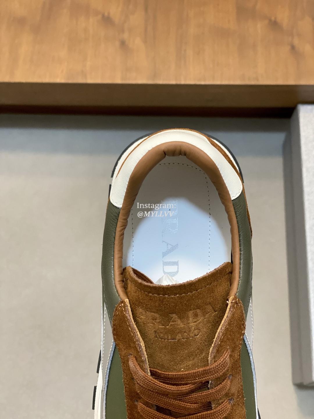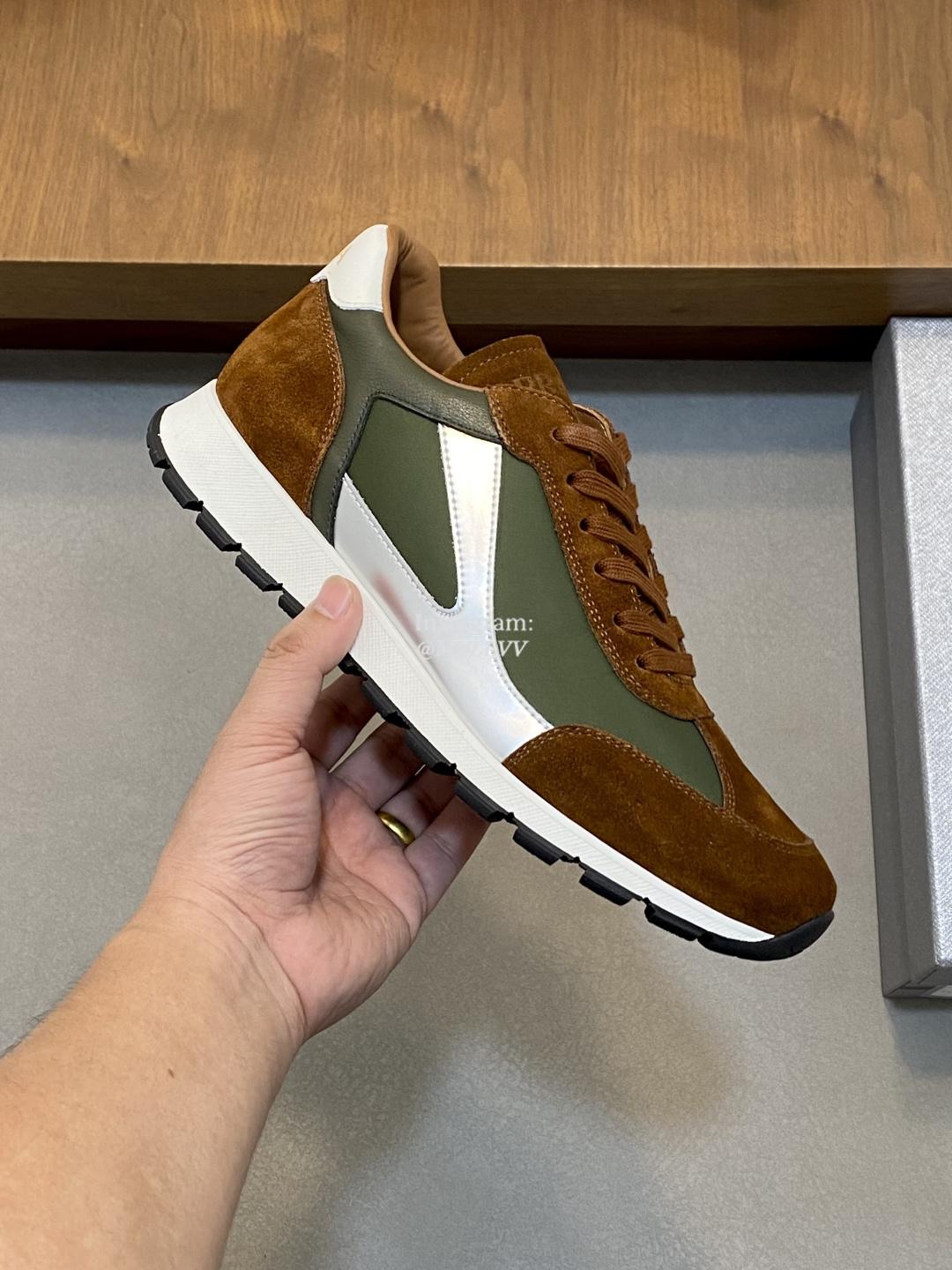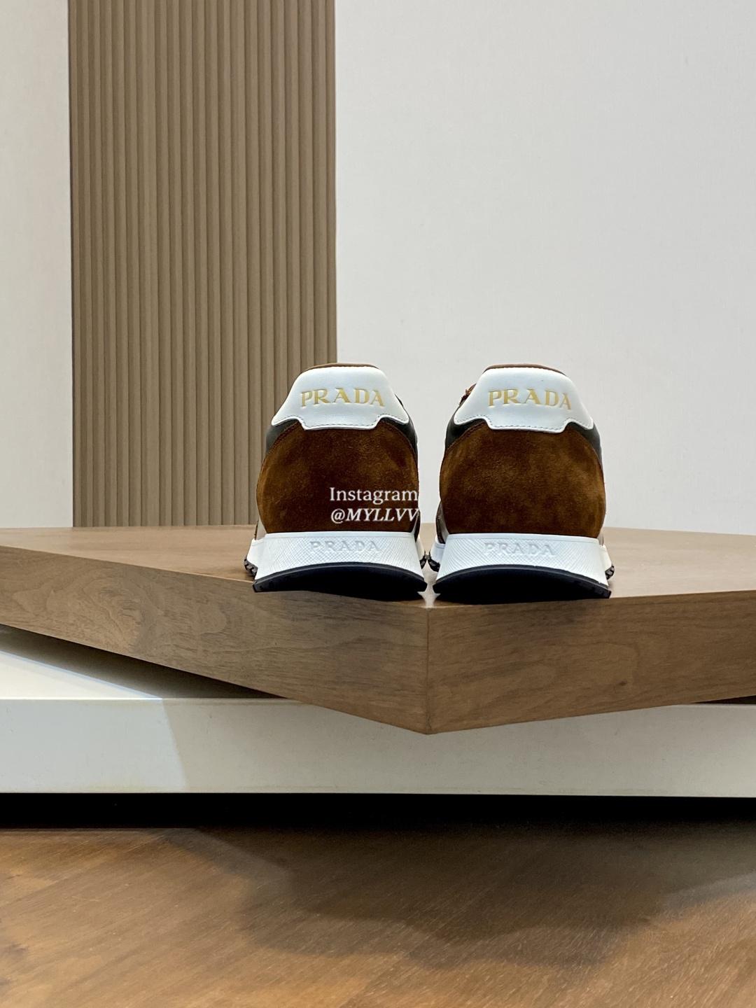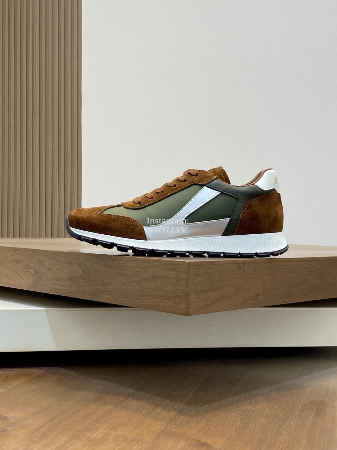 Prada Good Quality Men’s Mesh Panel Suede Cowhide Sport Shoes