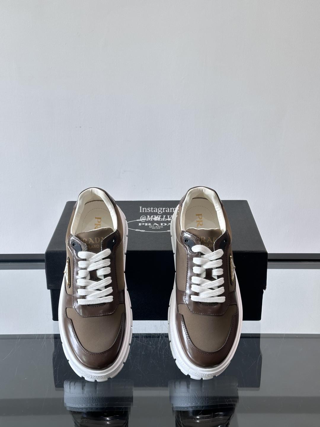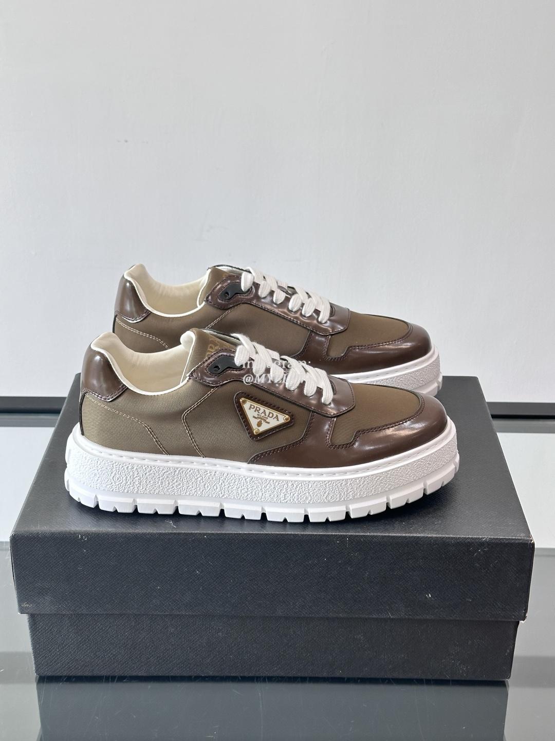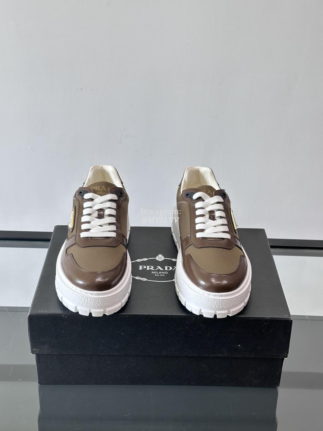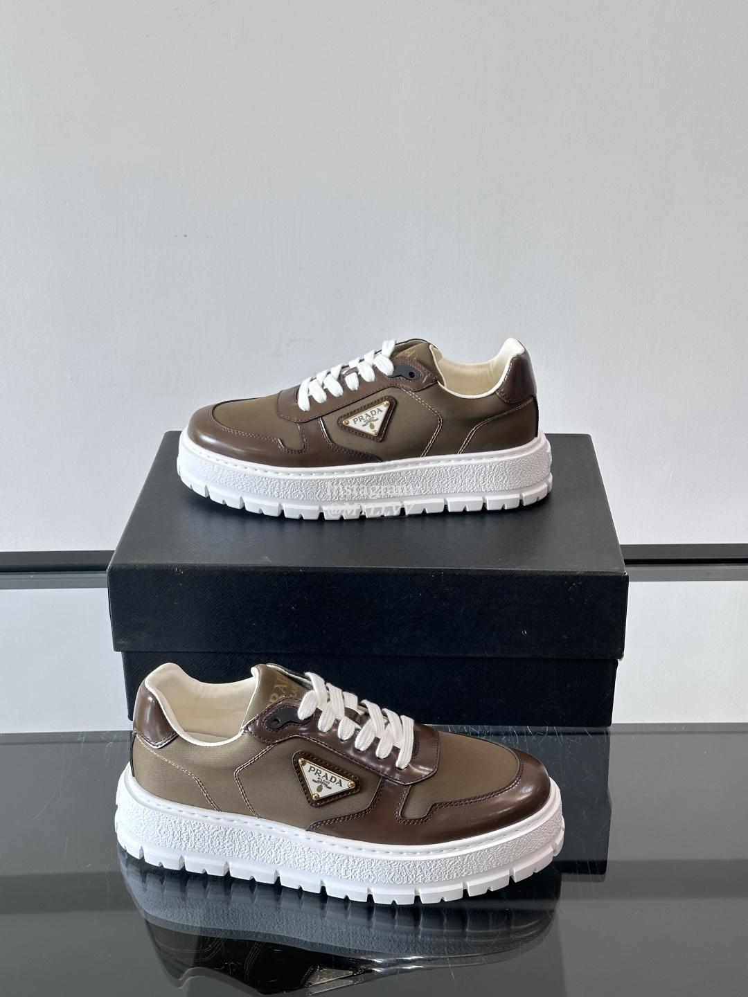 Prada High End Men’s Cowhide Leather Canvas Casual Sneakers