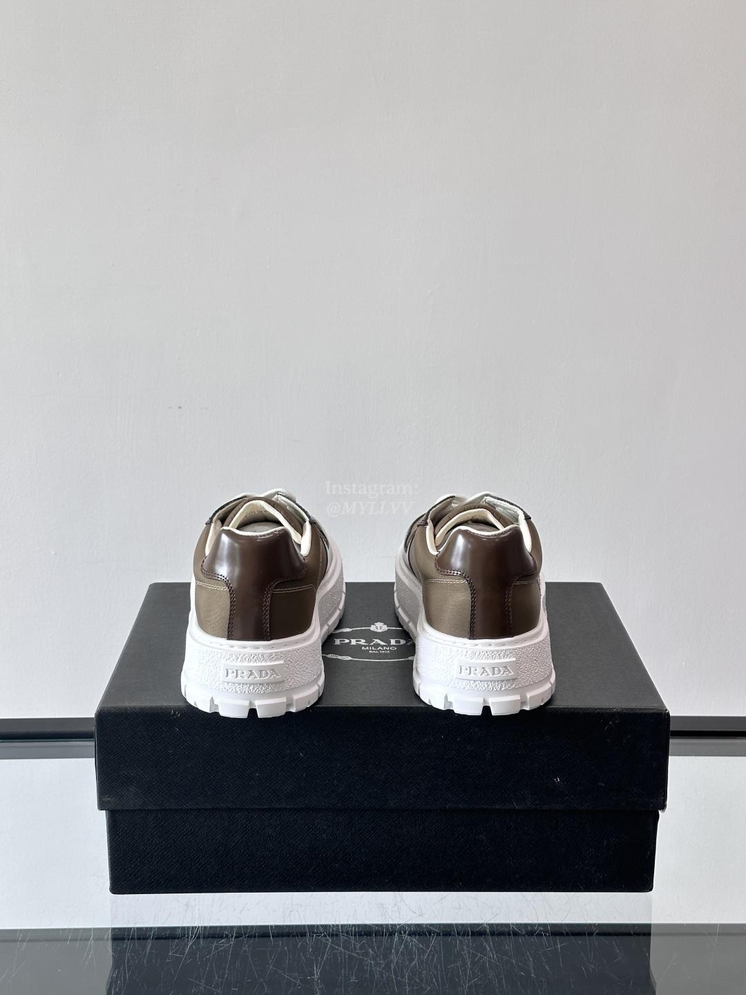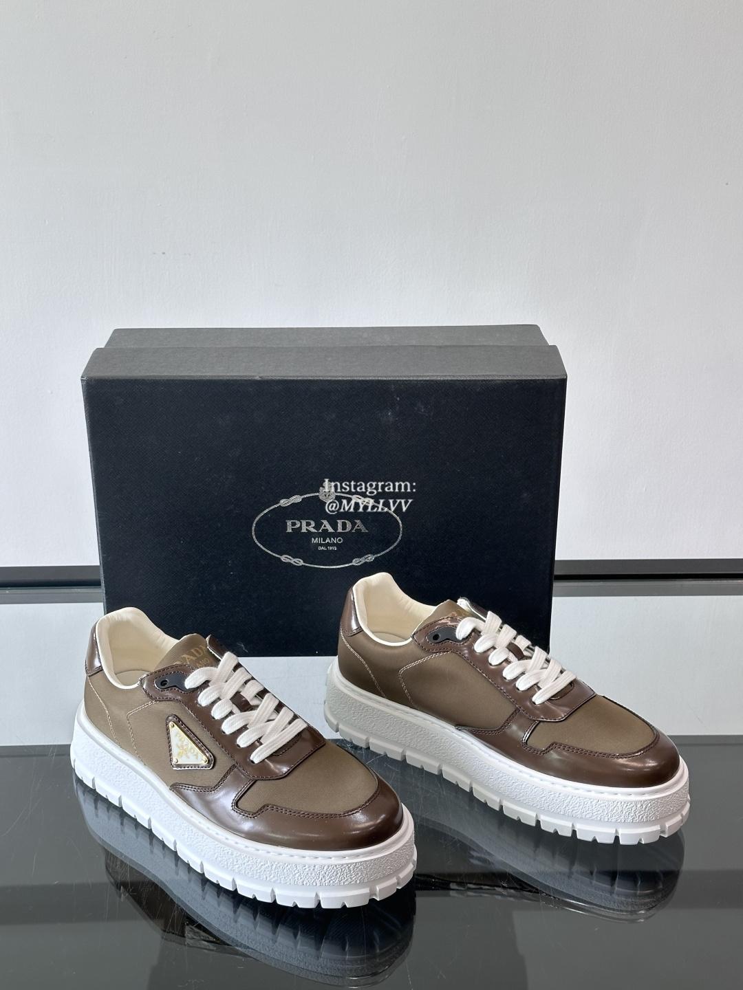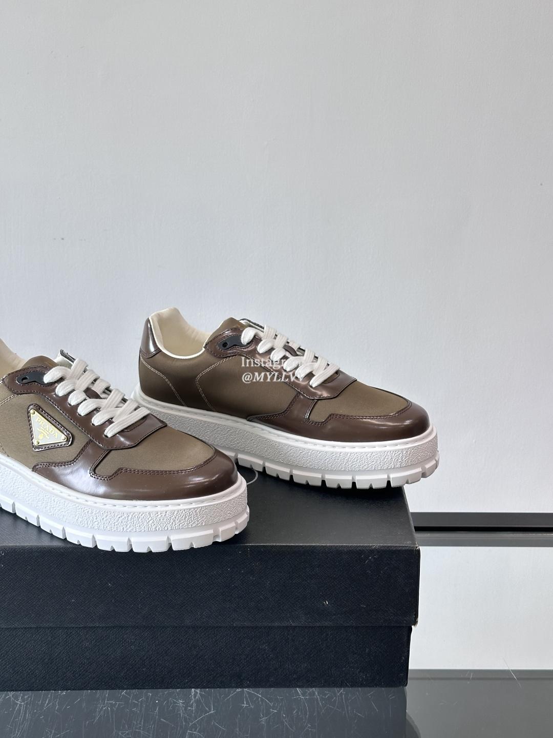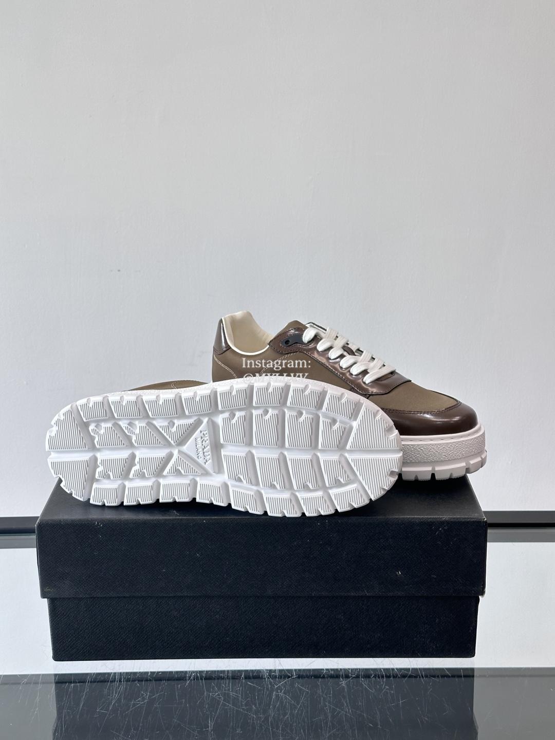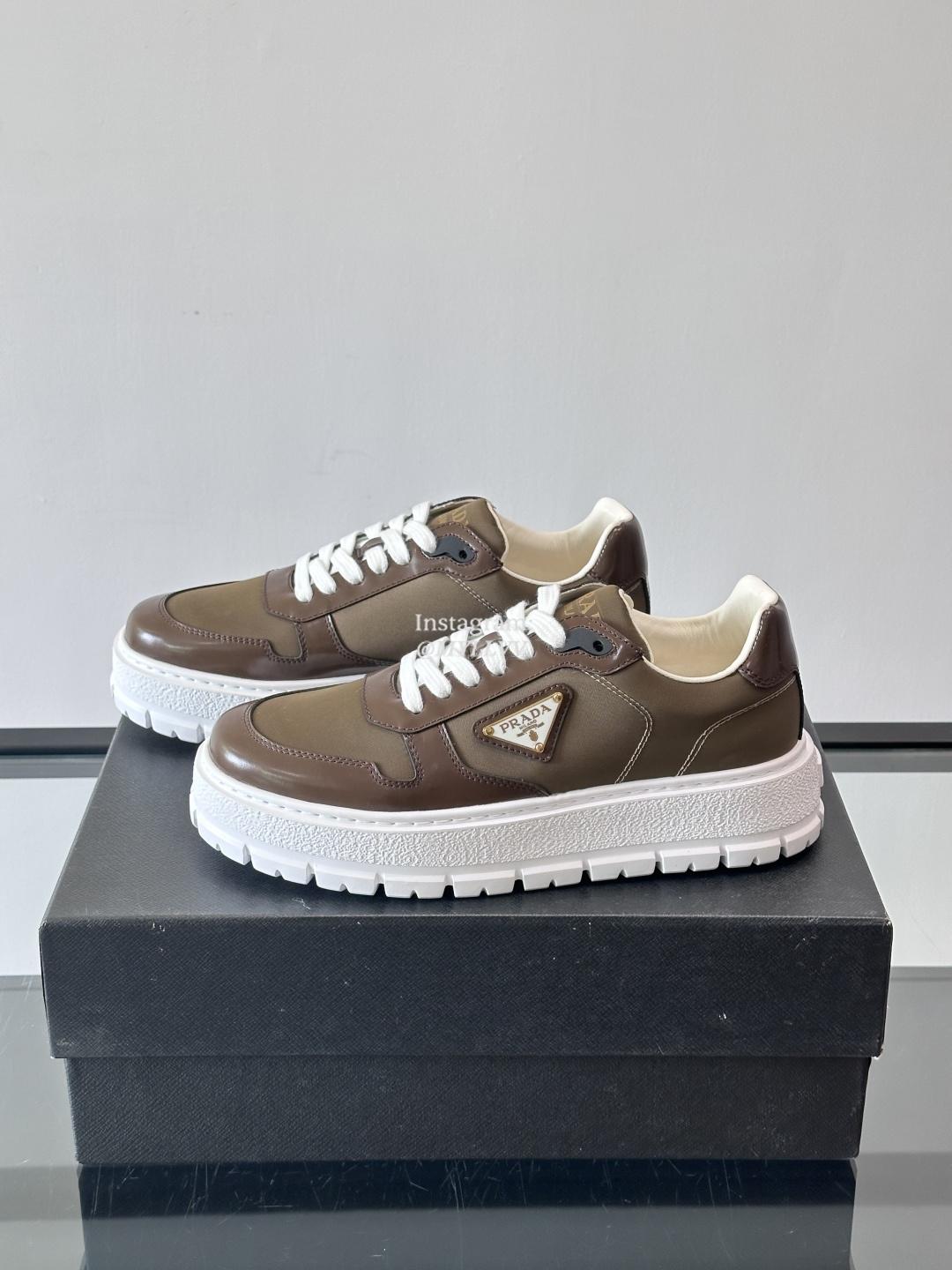 Prada High End Men’s Cowhide Leather Canvas Casual Sneakers