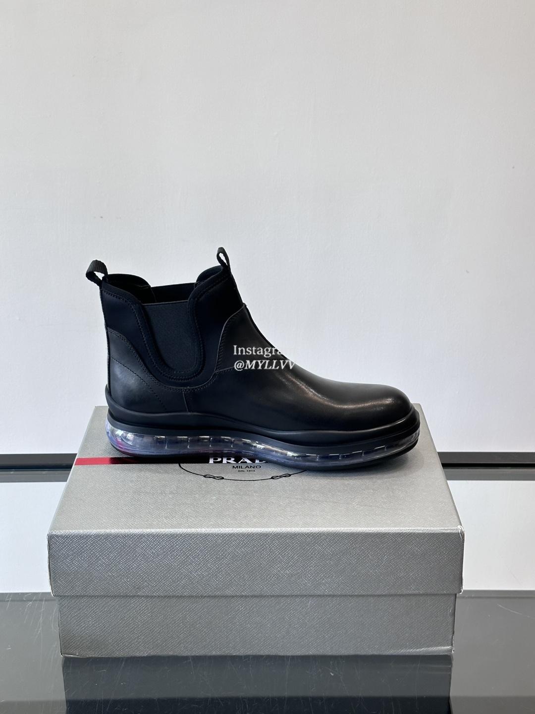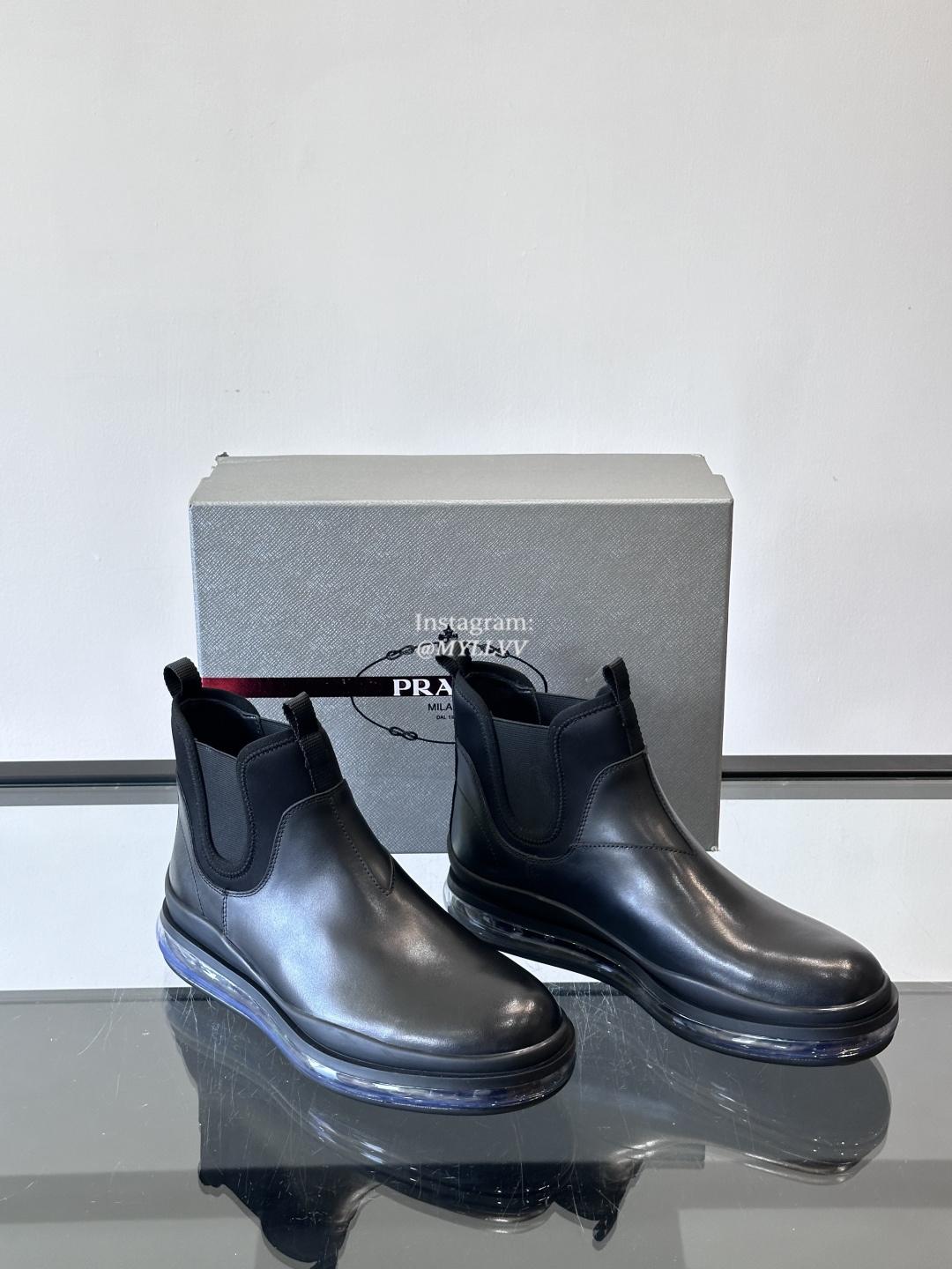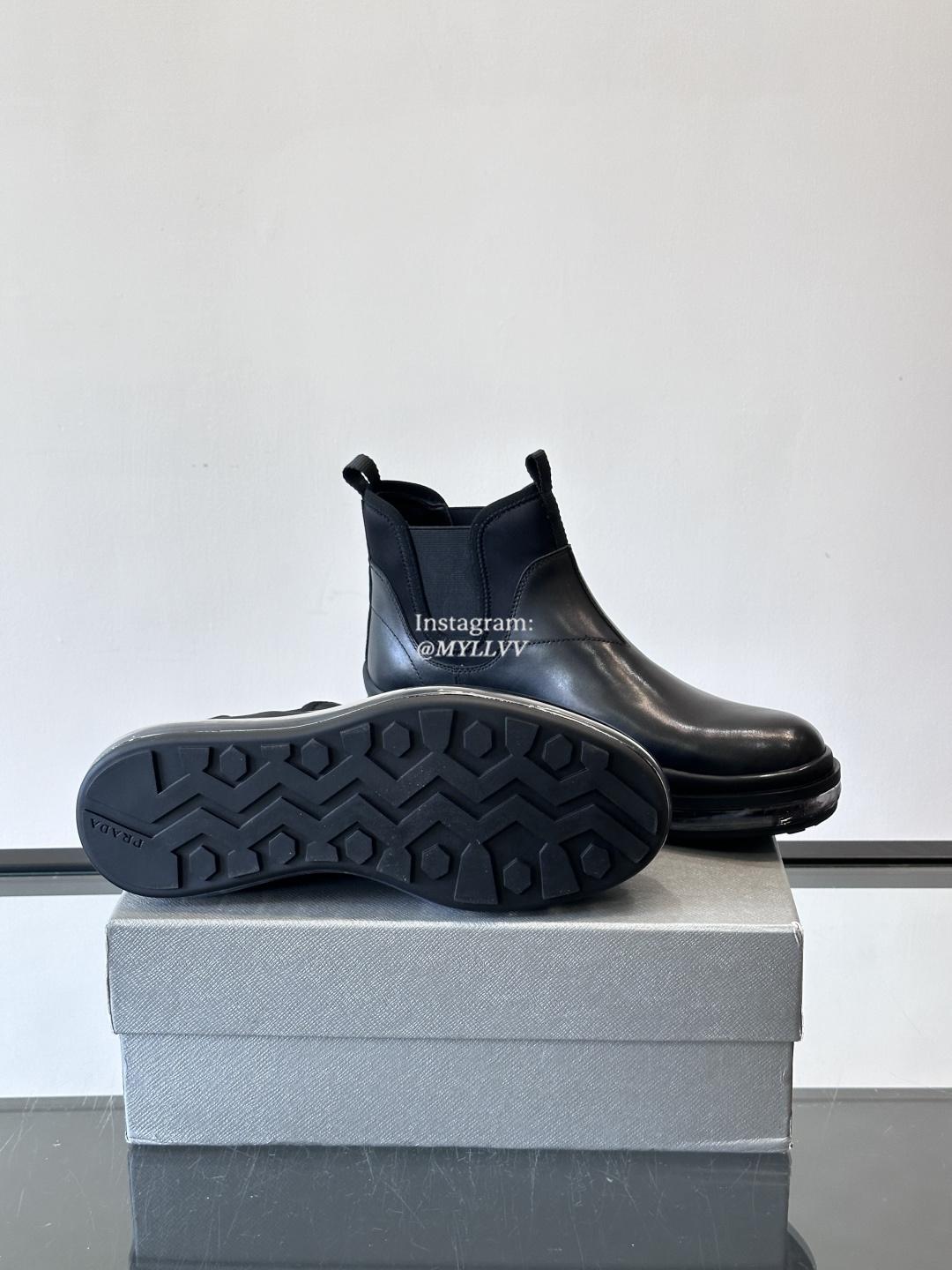Prada Men’s Bright Glossy Leather Chelsea Boots