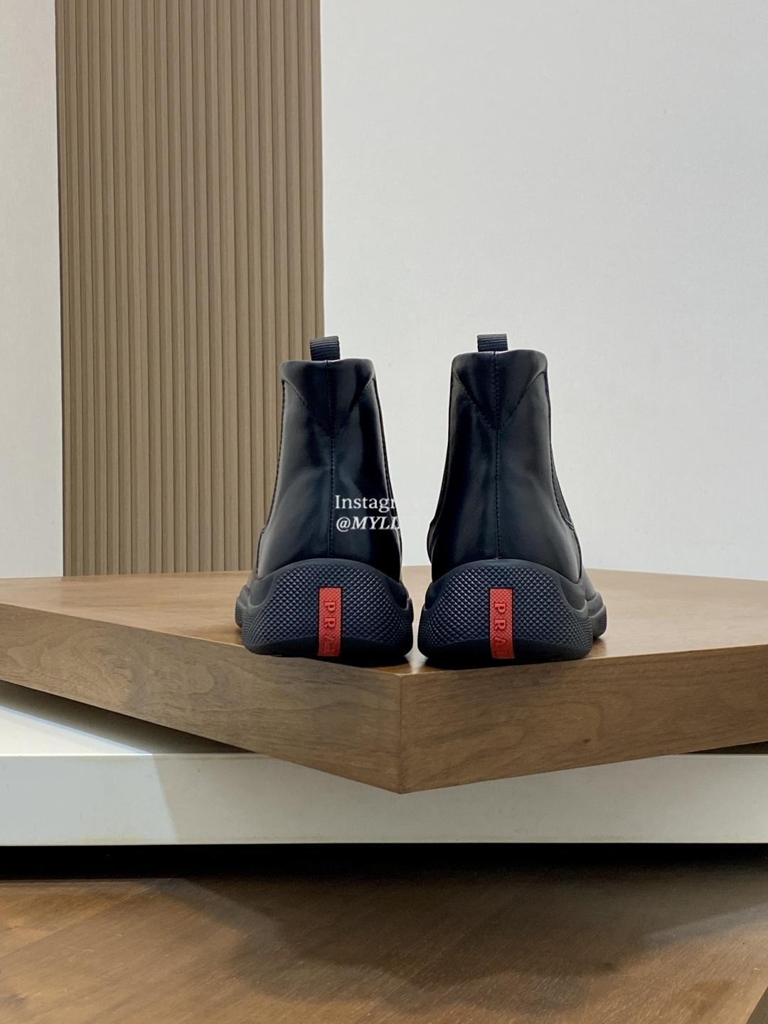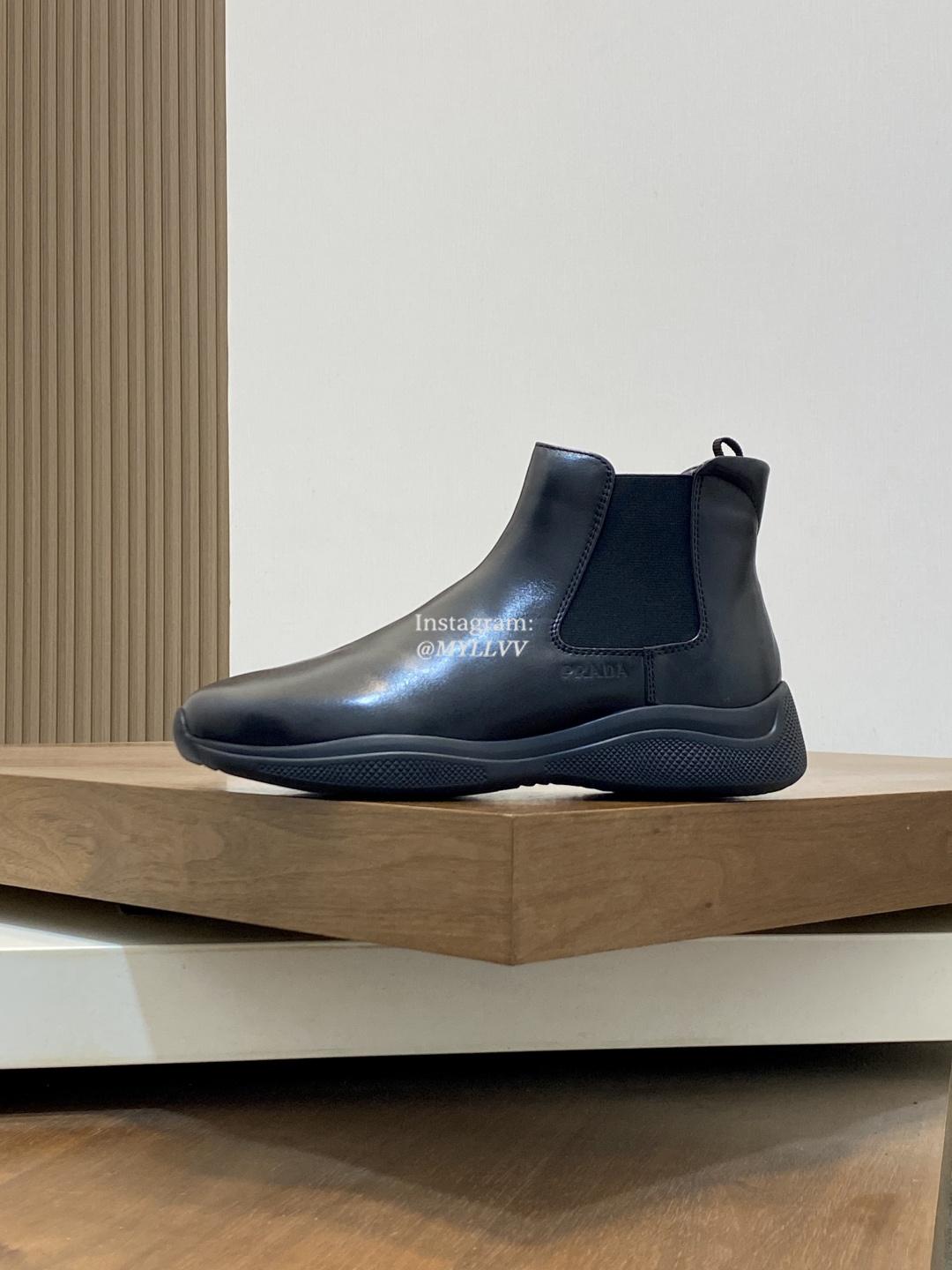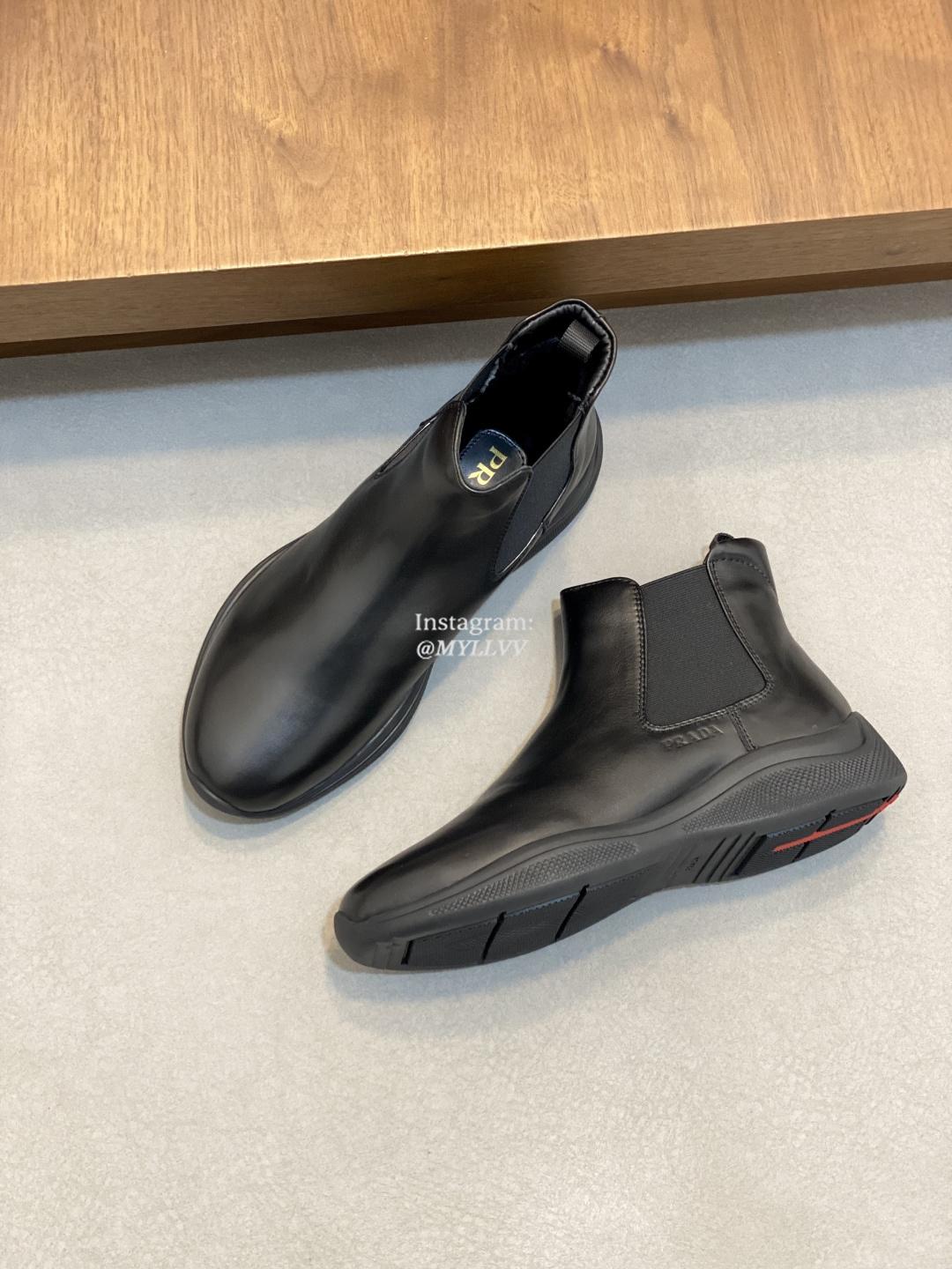 Prada Men’s High Top Lace Up Cowhide Leather Wool Sneakers