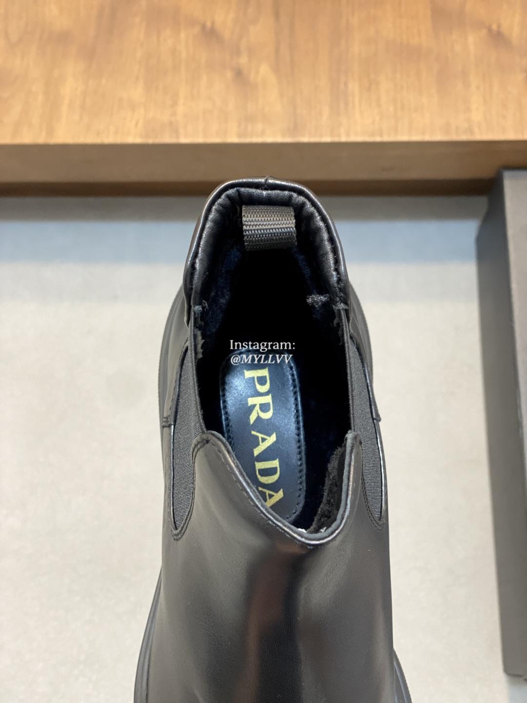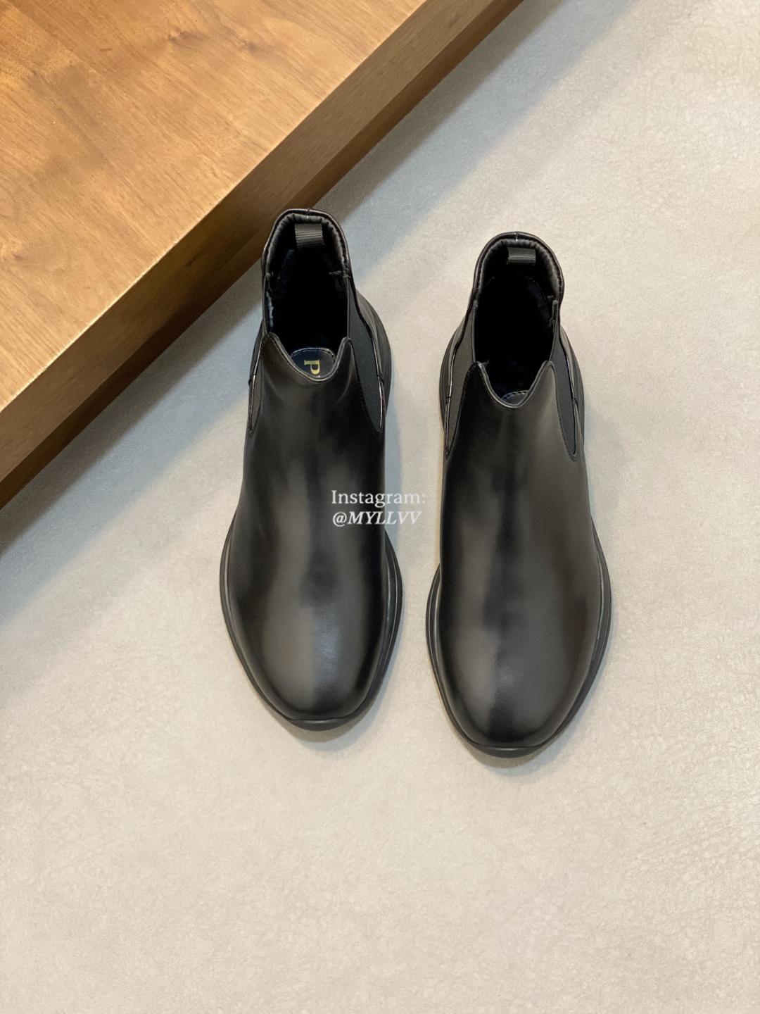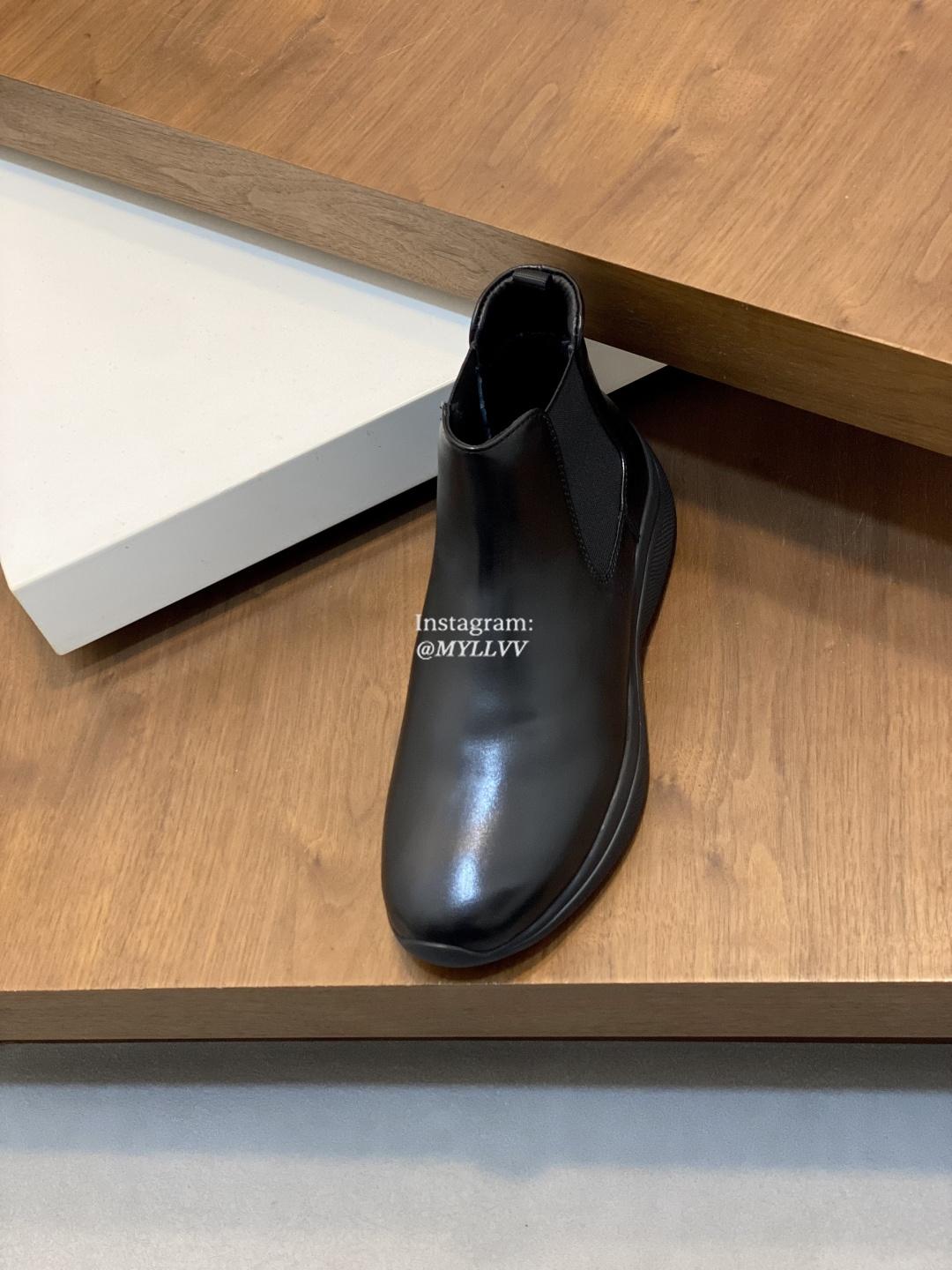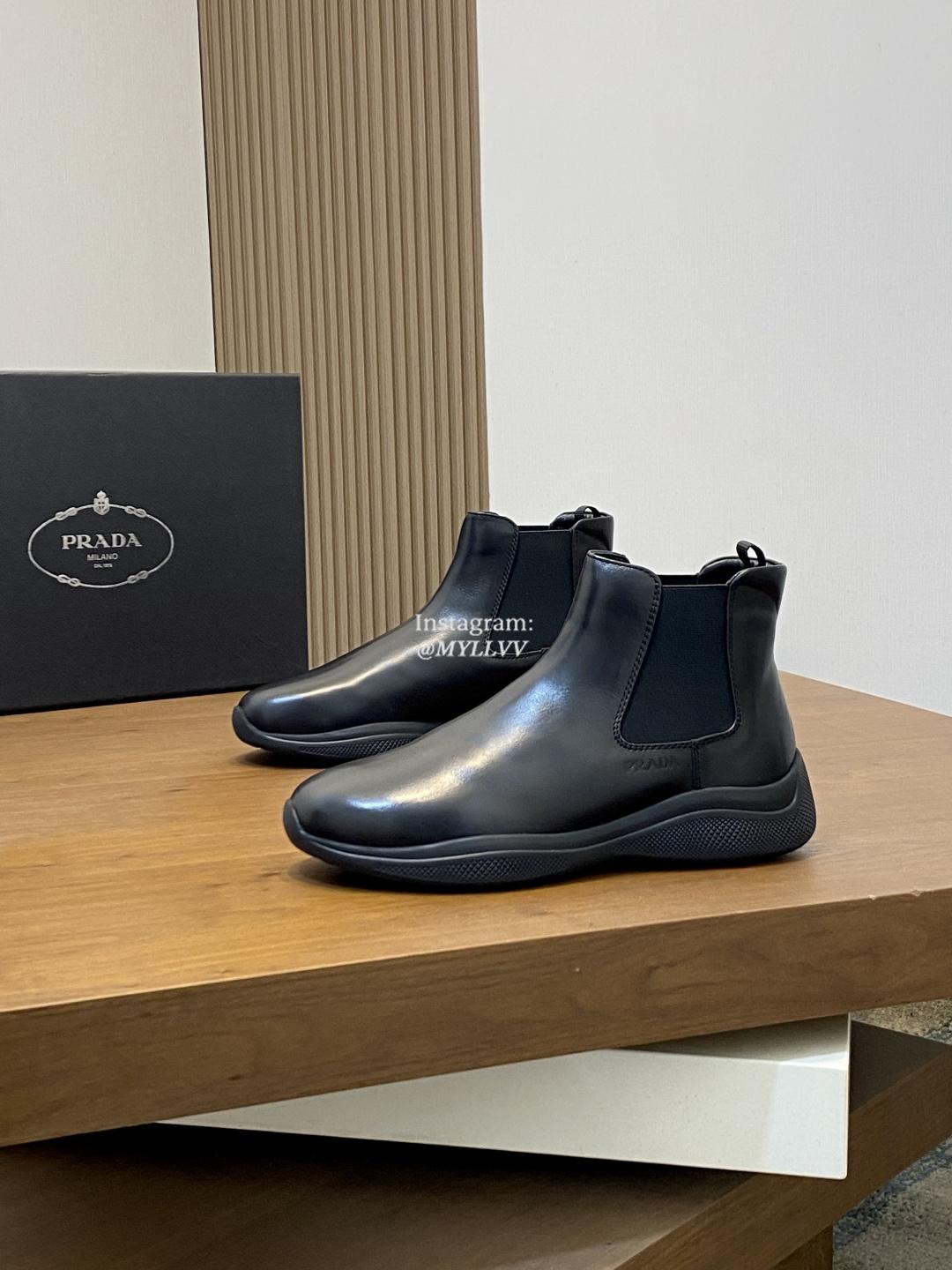 Prada Men’s High Top Lace Up Cowhide Leather Wool Sneakers