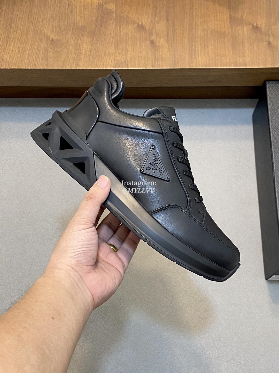 Prada Men’s New Cowhide Leather Patched Casual Sports Shoes