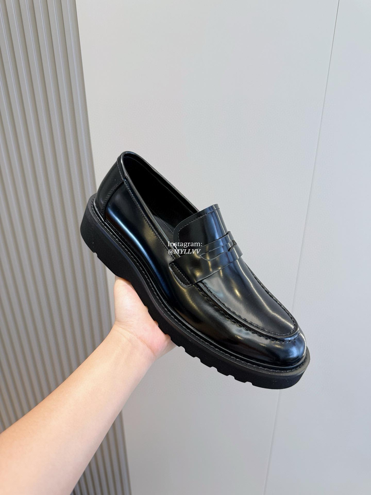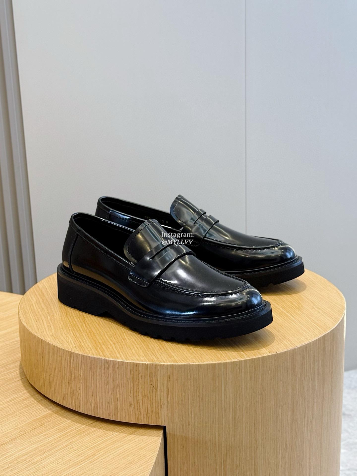 Prada Men’s Triangular Metal Logo Leather Derby Shoes